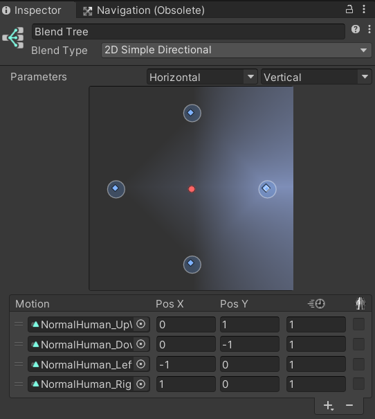 애니메이션의 방향 전환은 Blend Tree를 이용한다.