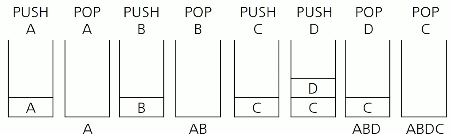 33.순서가 A, B, C, D로 정해진 입력 자료를 스택에 입력하였다가 출력할 때, 가능한 출력 순서의 결과가 아닌 것은?