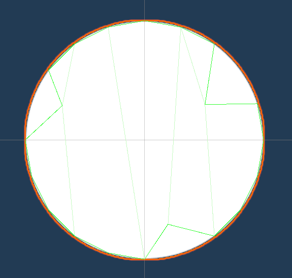 원은 충돌 외곽선(Circle Collider)에 모난 부분이 없어 서로 완전히 겹친 상태로 그 위치에 생성되고 있음