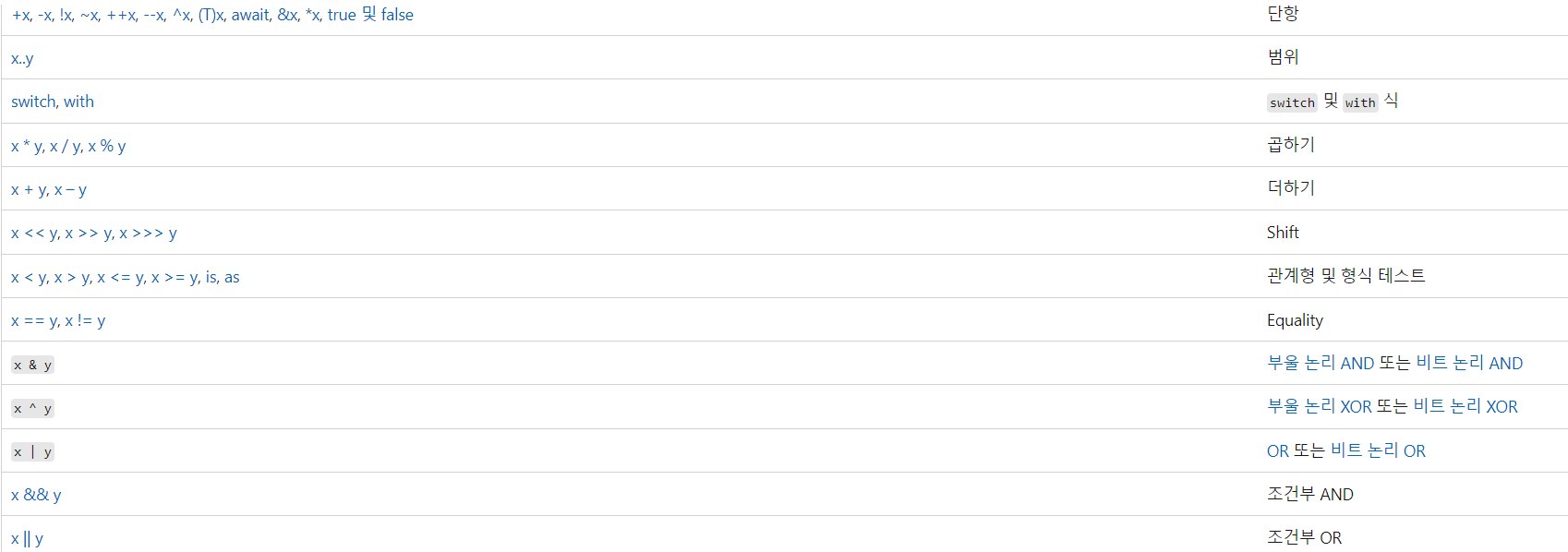 출처 : https://learn.microsoft.com/ko-kr/dotnet/csharp/language-reference/operators/